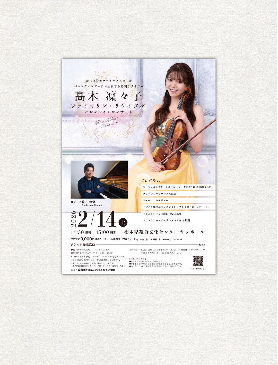 栃木県総合文化センターで開催される、髙木凜々子様の